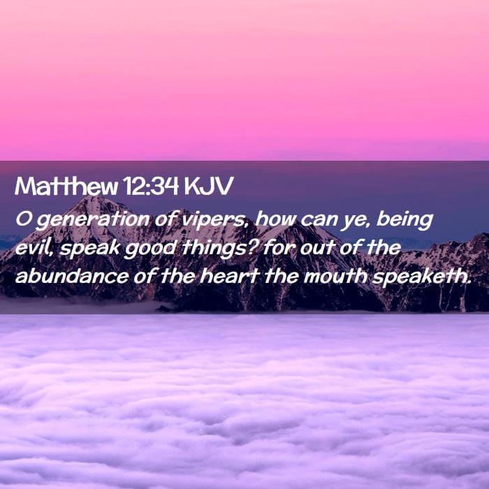 “O generation of vipers, how can ye, being evil, speak good things? for out of the abundance of the heart the mouth speaketh.” — Matthew 12:34 (KJV)